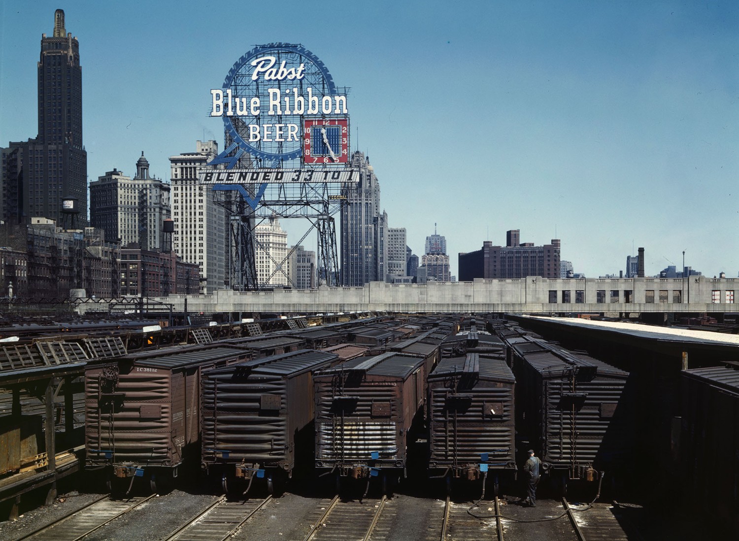 Chicago rail yards in the 1940s.  When steam was king.