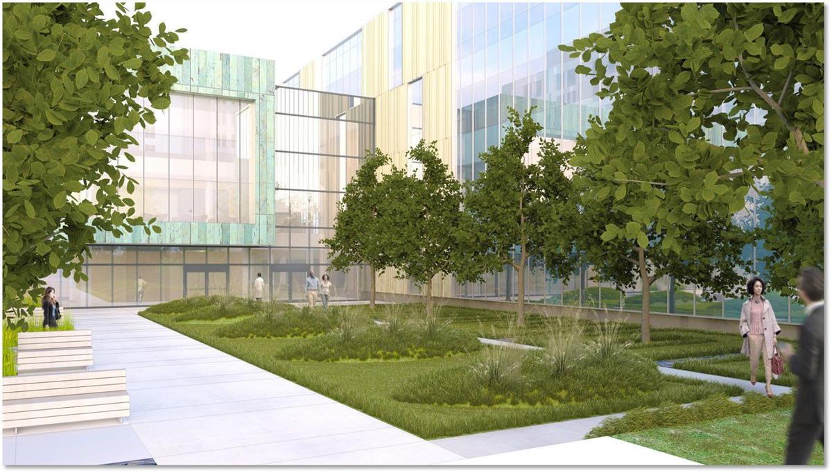 If I'm reading those renderings right the grass field is the Peavley site. Driving down Grand the other day I realized that one place where the setback of the main tower away from the street will actually look great is from Grand across Mill Creek Valley. The setback will preserve the view of the current tower, and the two of them, along with the new research building, will create a nice visual grouping from the north.