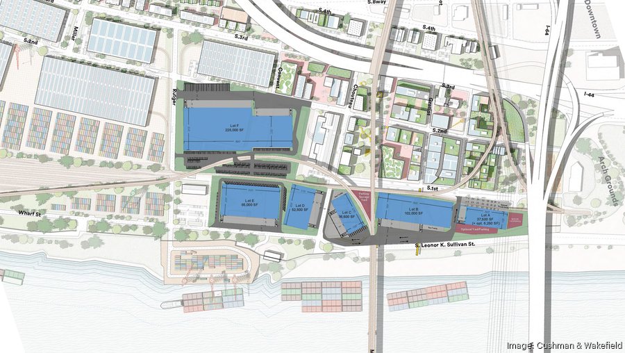 Marketing materials tout Gateway South’s proximity to major interstates, the Mississippi River and its access to the Union Pacific Railroad and Terminal Railroad Association switching lines, as well as a 15-year property tax abatement for the development. Building sizes, design, location, parking and configuration are “completely flexible depending on the users requirements,” per the property listing. A current conceptual design shows lots of varying sizes across the development site.