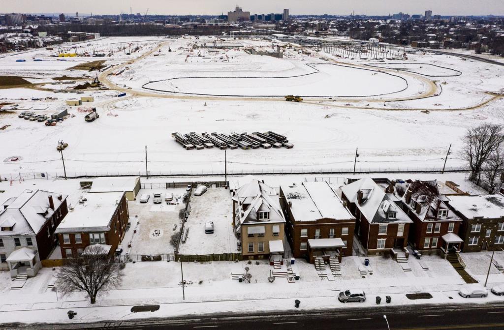Then, the construction team of McCarthy HITT JV will begin steel erection in St. Louis Place at Jefferson and Cass avenues. Much of 2020 was spent conducting mass grading and installing the foundation of the new western headquarters of NGA, officials said Tuesday during a media briefing of the project. Foundation work is still underway.