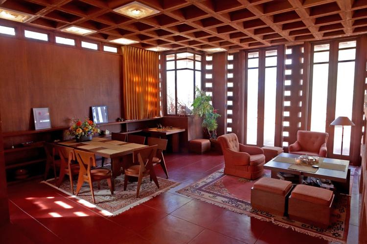 The roof leaks quite a bit. Cynthia said that was true throughout their stay in the house. Apparently that is a signature of FLW houses, leaking roofs.