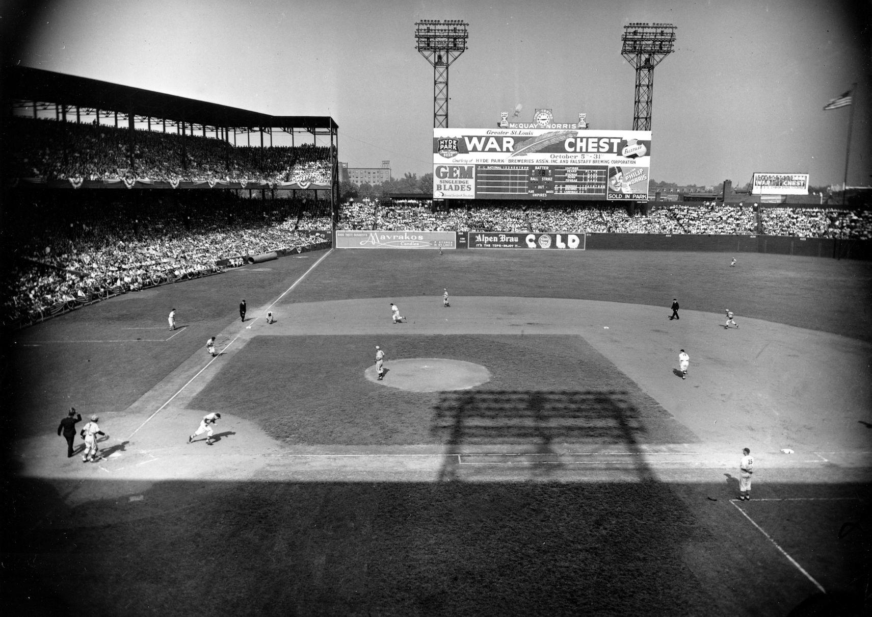 Taken on this day in 1944. The St. Louis Cardinals vs. the St. Louis Browns in the 1944 World Series. Also known as the Streetcar Series. This image was taken in the 3rd inning at Sportsman Park: