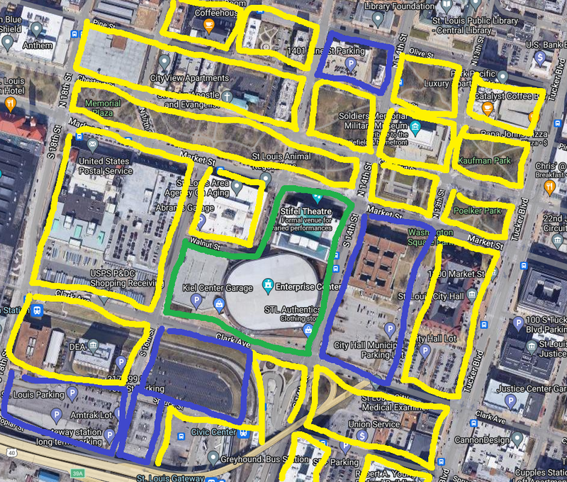 ^^ Thanks for the map highlighting the lots I specifically mentioned, the Blue is more than plenty.  There doesn’t need to be some massive “hockey district,” just some quality infill that would allow for a handful of restaurants and bars to open up closer to the stadium and maybe allow for a new hotel and a couple apartment buildings.  As I said, no real reason to deck the MetroLink tracks.  Plenty of space available to do something meaningful near the primary entrances to the building and the public transit station.