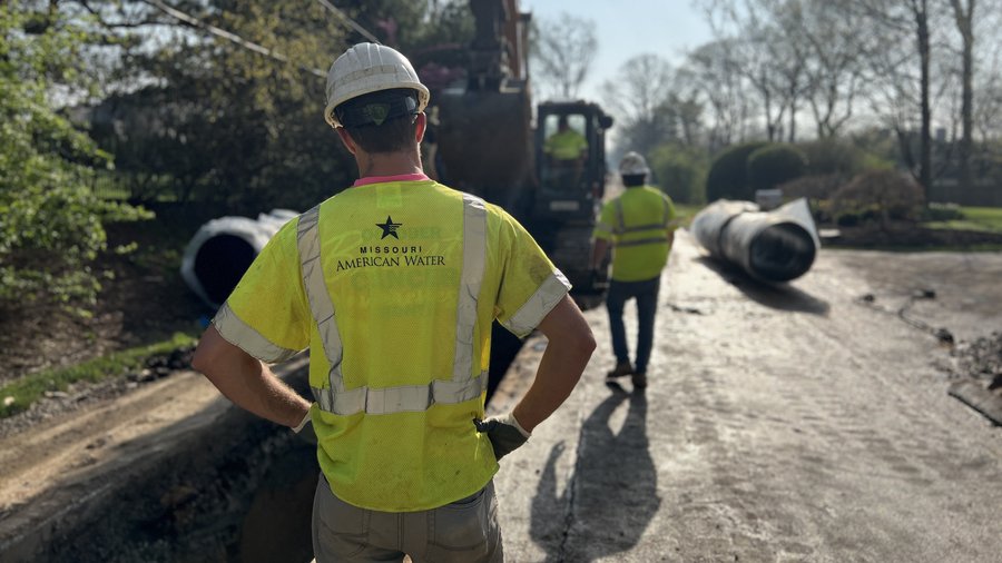 A Missouri American Water crew works to replace a water main in St. Louis County.