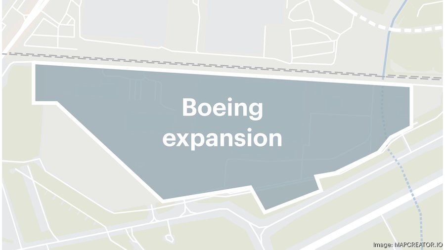 A map of a planned $1.8 billion Project Voyager expansion for Boeing on land leased at St. Louis Lambert International Airport.
