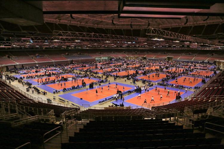 The recent volleyball event appeared to use the dome floor with retractable seats all the way back.
