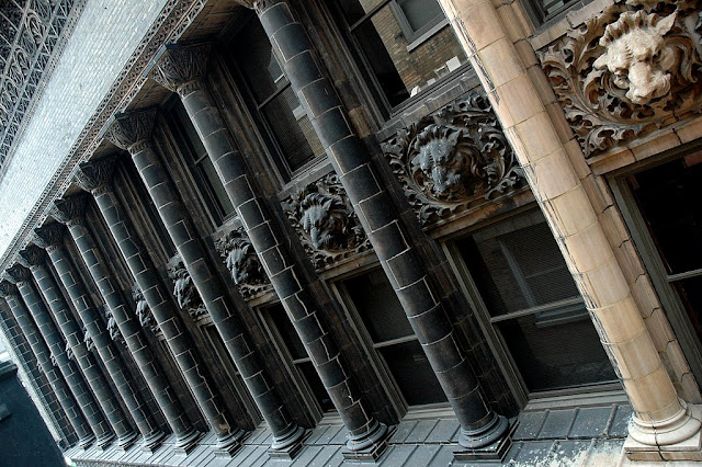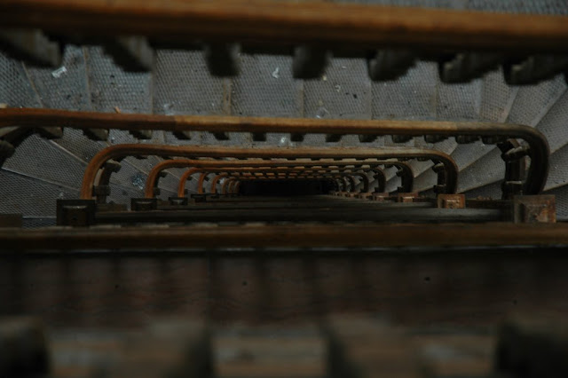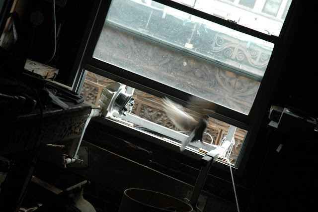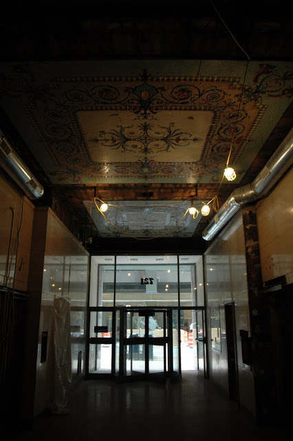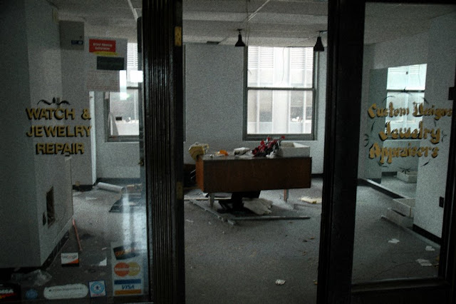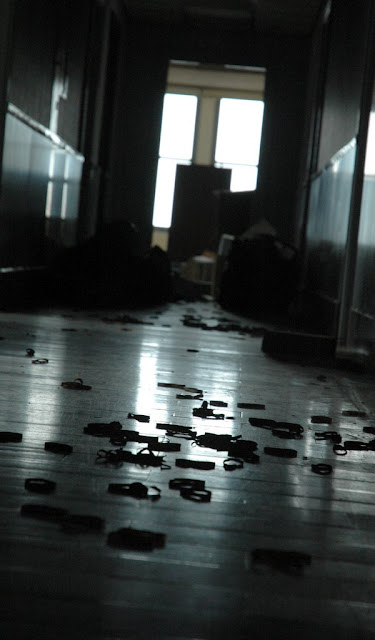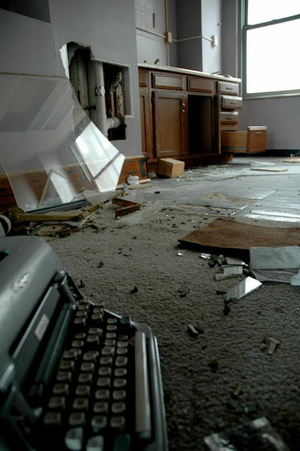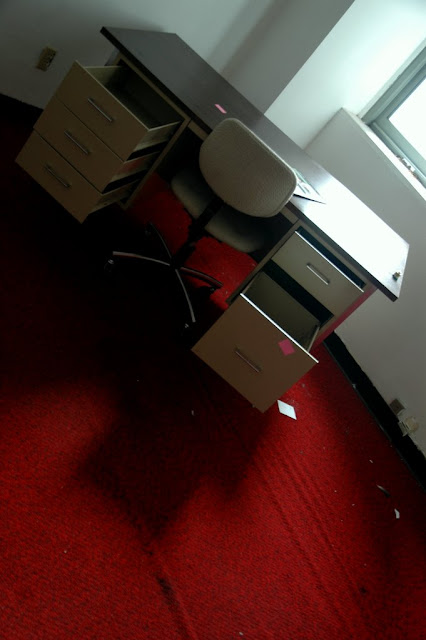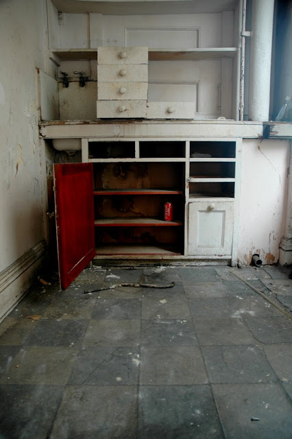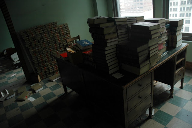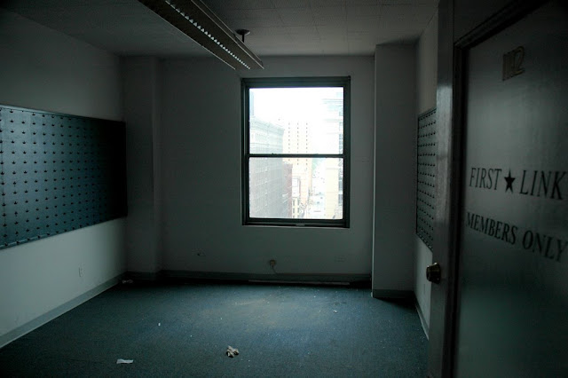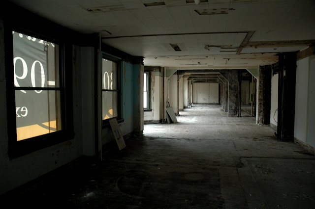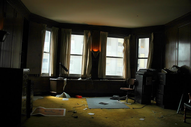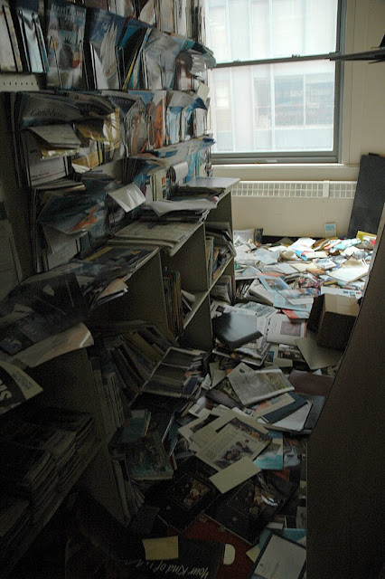 the place was in total chaos when I toured the building in April, before any real demo had taken place. the photos basically start at the top floor and work down. the building has basically been abandoned & ransacked. the whole building was unlocked.